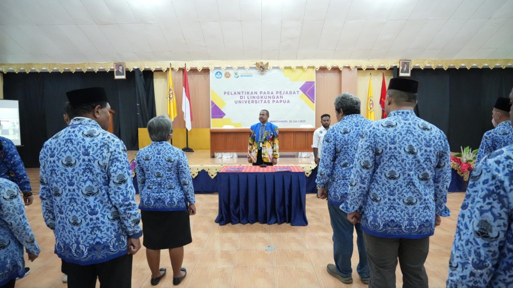 Manokwari, Papua Barat – Rektor Universitas Papua (UNIPA) Dr. Hugo Warami melantik 34 pejabat baru eselon III dan IV di berbagai unit kerja Unipa. Kegiatan ini dilaksanakan di Aula Pascasarjana pada Rabu (30/7/2025). Pejabat yang dilantik terdiri dari jabatan struktural dan fungsional.